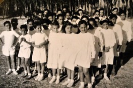 [Retrato grupal mixto de alumnos de la Escuela de Til Til en tenida de gimnasia] [Fotografía]