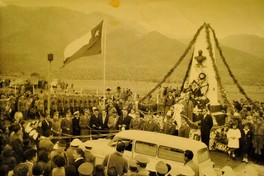 Fotografía tomada en el monolito original en la cual aparece el Alcalde Pedro Hidalgo Sanhueza con un discurso en la mano.