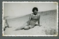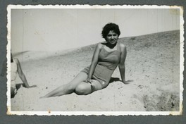 [Retrato individual de Carmen Aguirre en playa Brava] [fotografía] Chile : [Editor no identificado] , 1958. 1 Fotografía : Formato digital, monocromo. .