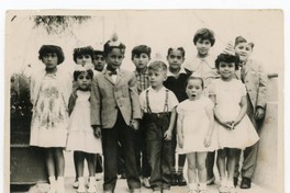 [Retrato de un grupo de niños en la celebración de un cumpleaños] [Fotografía]. Chile : [Editor no identificado] , 1959. 1 Fotografía : Formato digital, monocromo. .