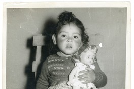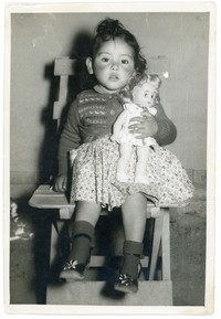 [Retrato de una niña sentada sosteniendo su muñeca] [Fotografía]. Chile : [Editor no identificado] , 1963. 1 Fotografía : Formato digital, monocromo. .