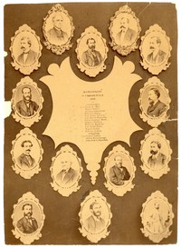 Al centro de la fotografía se aprecia un escrito en el cual están los nombres de las Autoridades del departamento de Copiapó: Don Tomás G. Gallo, Don Diego Carvallo, Don Anselmo Carabántes, Don Telésforo Espiga, Don José María Cabezón, Don José Martín Manterola, Don Felipe Santiago Matta, Don Olegario Olivares, Don Telésforo Mandiola, Don José Rafael Salas, Don Manuel Cortez, Don Baltasar de Ossa. Suplentes: Don Samuel Valdés, Don Carlos María Sayago, Don Juan de la C. Saavedra.