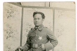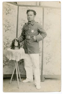 Reproducción de una tarjeta postal en la que aparece Segundo Wastavino vistiendo uniforme de bombero.