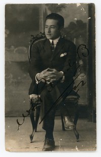 [Retrato de un hombre joven sentado] [Fotografía]. Chile : [Editor no identificado] , [Fecha no identificada. 1 Fotografía : Formato digital, monocromo. .
