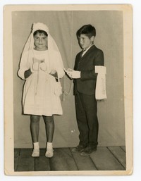 [Recuerdos de primera comunión de los hermanos mellizos María y Juan Carlos Herrera] [Fotografía]. Chile : [Editor no identificado] , 1967. 2 fotografías : Formato digital, monocromo. .