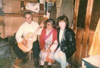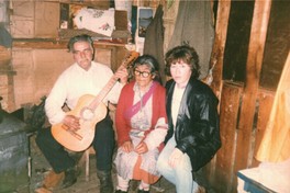 En la fotografía aparece la esposa del carabinero Orellana, Ángela Iñiguez y Próspero Urrutia sosteniendo una guitarra.