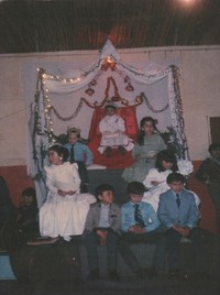 [Retrato de un grupo de niños alrededor de la reina de la escuela] [fotografía]. Chile : [Editor no identificado] , 1986. 1 Fotografía : Formato digital, Policromo. .