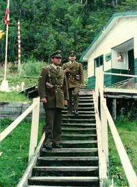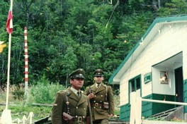 [Dos carabineros al exterior del retén de Caleta Tortel] [fotografía].