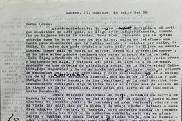 Wabern, Suiza [a] María Luisa Señoret Carta, 27 julio de 1980, [manuscrito] Carlos Droguett.