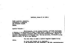 Santiago, Chile [a] Fernando Alegría, Estados Unidos Carta, 20 de marzo 1960, [manuscrito] Enrique Lafourcade.