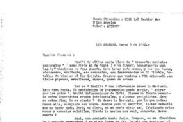 Los Angeles, California [a] Fernando Alegría Carta, 3 de marzo 1962, [manuscrito] / Enrique Lafourcade. Imagen digital : Formato PDF (1 hoja) ; 2.540 KB. .