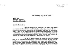 Bekeley, California [a] Fernando Alegría Carta, 15 de mayo 1962, [manuscrito] Enrique Lafourcade.