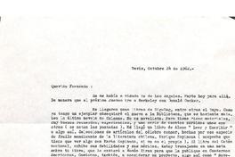 Santiago, Chile [a] Fernando Alegría Carta, 24 de octubre 1962, [manuscrito] Enrique Lafourcade.