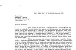 Salt Lake City [a] Fernando Alegría, California Carta, 24 de septiembre 1969, [manuscrito] Enrique Lafourcade.