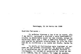Santiago, Chile [a] Fernando Alegría Carta, 31 de marzo 1989, [manuscrito] Enrique Lafourcade.