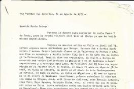 San Lorenzo del Escorial, España, [a] María Luisa Señoret Carta, 24 mayo de 1976, [manuscrito] / Sergio Castillo Imagen digital : Formato PDF (1 hoja) ; 135 KB. .