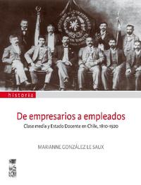 De empresarios a empleados : clase media y Estado docente en Chile 1810-1920 / Marianne González Le Saux. Santiago : LOM ediciones, 2011 (Santiago de Chile : LOM) 387 páginas : ilustraciones ; 21 cm. .