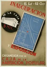 Inauguración y exposición de la casa 5 mil organizada por la Caja de la Habitación Popular / [estampa] : Camilo Mori. [Chile] : [Editor no identificado], 1940. 1 afiche : color ; 54 x 76 cm. .