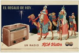 El regalo de hoy... un radio RCA Victor / [estampa] : René Ríos Boettiger ; seudónimo: Pepo. Chile : [Editor no identificado], [194-?]. 1 cartel (afiche) : color ; 32,5 x 50 cm. .