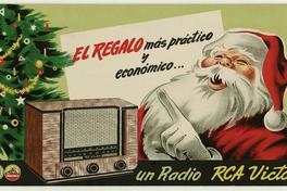 El regalo más práctico y económico... un radio RCA Victor / [estampa] : René Ríos Boettiger ; seudónimo: Pepo. Chile : [Editor no identificado], [194-?]. 1 cartel (afiche) : color ; 28 x 52 cm. .