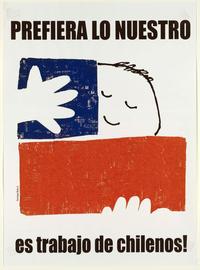 Prefiera lo nuestro es trabajo de chilenos!. [estampa] : Chile : [Editor no identificado], [198-?]. 1 cartel (afiche) : color ; 52 x 38 cm. .