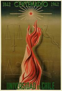 1842 Centenario 1942 [estampa] : Carlos Sagredo. Chile : [Editor no identificado], 1942. 1 cartel (afiche) : color ; 76 x 52,5 cm. .