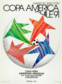 Copa America Chile 91 diario El Sur con. [estampa] : Concepción, Chile : [Editor no identificado], 1991. 1 cartel (afiche) : color ; 77 x 54,5 cm. .