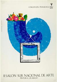 II Salón Sur Nacional de Arte pintura y grabado. [estampa] : Concepción, Chile : [Editor no identificado], 1989. 1 cartel (afiche) : color ; 77,5 x 52,5 cm. .