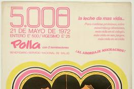 Polla, con 2 terminaciones 5.000 millones / [estampa] : Waldo González. Chile : Polla Chilena de Beneficencia, 1972. 1 cartel (afiche) : color ; 77 x 55 cm. .