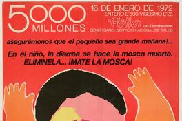 Polla, con 2 terminaciones 5.000 millones / [estampa] : Waldo González. Chile : Polla Chilena de Beneficencia, 1972. 1 cartel (afiche) : color ; 75 x 53,5 cm. .