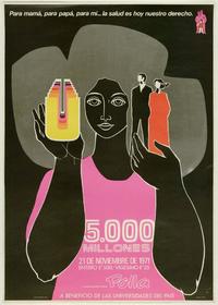 5.000 millones Polla, la suerte termina 2 veces / [estampa] : Waldo González. Chile : Polla Chilena de Beneficencia, 1971. 1 cartel (afiche) : color ; 75 x 52,5 cm. .