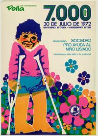 7.000 millones Polla, con 2 terminaciones / [estampa] : Waldo González. Chile : Polla Chilena de Beneficencia, 1972. 1 cartel (afiche) : color ; 75 x 53 cm. .