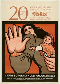 Polla, con 2 terminaciones y un 2do gordo de E°4 millones cierre su puerta a la bronconeumonia / [estampa] : Waldo González. Chile : Polla Chilena de Beneficencia, 1973. 1 cartel (afiche) : color ; 67 x 46,5 cm. .