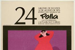 Polla con 2 terminaciones y un "Gordito" de E°4 millones 24 millones de escudos / [estampa] : Waldo González. Chile : Polla Chilena de Beneficencia, 1973. 1 cartel (afiche) : color ; 66,5 x 46,5 cm. .