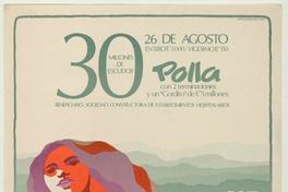 Polla, con 2 terminaciones y un "Gordito" de E°5 millones 30 millones de escudos / [estampa] : Waldo González. Chile : Polla Chilena de Beneficencia, [197-?]. 1 cartel (afiche) : color ; 67 x 46,5 cm. .