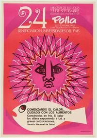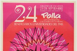 Polla, con 2 terminaciones y un "Gordito" de E°4 millones 24 millones de escudos / [estampa] : Waldo González. Chile : Polla Chilena de Beneficencia, [197-?]. 1 cartel (afiche) : color ; 67 x 46,5 cm. .