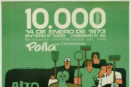 Polla, con 2 terminaciones 10 millones / [estampa] : Waldo González. Chile : Polla Chilena de Beneficencia, 1973. 1 cartel (afiche) : color ; 76,5 x 53 cm. .