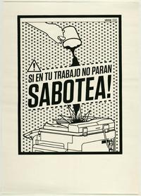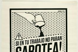 Si en tu trabajo no paran, sabotea! [estampa]. Santiago, Chile : [Editor no identificado], [2019]. 1 cartel (afiche) : blanco y negro ; 72 x 51 cm. .