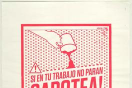 Si en tu trabajo no paran, sabotea! [estampa]. Santiago, Chile : [Editor no identificado], [2019]. 1 cartel (afiche) : blanco y rojo ; 77 x 55 cm. .