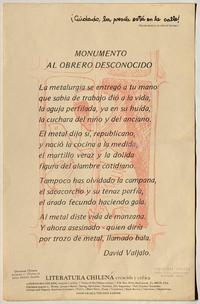 Monumento al obrero desconocido ¡cuidado, la poesía está en la calle!. [estampa] / [Estados Unidos] : [Editor no identificado], [19-?]. 1 cartel (afiche) : color ; 43 x 28 cm. .