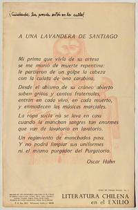 A una lavandera de Santiago ¡cuidado, la poesía está en la calle!. [estampa] / [Estados Unidos] : [Editor no identificado], [19-?]. 1 cartel (afiche) : color ; 43 x 28 cm. .