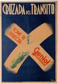 Cruzada del tránsito tome su derecha Geniol quita el dolor / [estampa] : René Ríos Boettiger ; seudónimo: Pepo. Chile : [Editor no identificado], 1937. 1 cartel (afiche) : color ; 54 x 37,5 cm. .