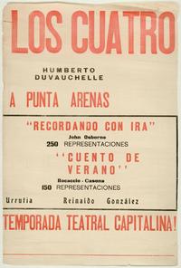 Los cuatro a Punta Arenas [estampa] Santiago, Chile : [Editorial no identificado], [19--?]. 1 cartel (afiche) : color ; 76,5 x 50,5 cm. .