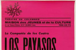 Los payasos de la esperanza una creación del tit-taller de investigación teatral de la Universidad Católica de Chile. [estampa] / [Colombes, Francia] : [Editor no identificado], 1981. 1 cartel (afiche) : fucsia y negro ; 59,5 x 38,5 cm. .