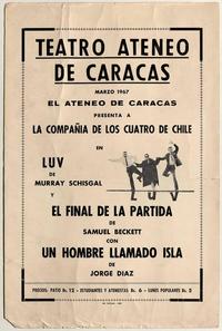 El Ateneo de Caracas presenta a la compañía de Los cuatro de Chile en Luv de Murray Schisgal y El final de la partida de Samuel Beckett con Un hombre llamado isla de Jorge Díaz.