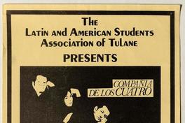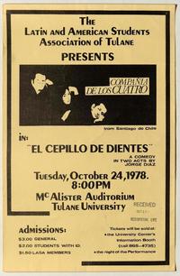 The latin and american students association of Tulane presents, compañía de Los cuatro, from Santiago de Chile in: "El cepillo de dientes" a comedy in two acts by Jorge Díaz.