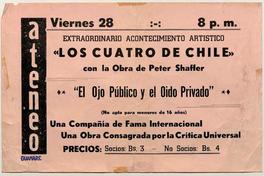 Extraordinario acontecimiento artístico "Los cuatro de Chile" con la obra de Peter Shaffer "El ojo público y el oído privado" (no apta para menores de 16 años).