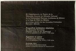El Departamento de Teatro de la Dirección General de Difusión Cultural de la Universidad Nacional Autónoma de México y la Casa de Chile en México presentan dentro de las Jornadas Culturales Salvador Allende.
