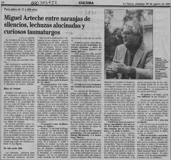 Miguel Arteche entre naranjas de silencios, lechuzas alucinadas y curiosos taumaturgos [artículo] Luisa Ulibarri.