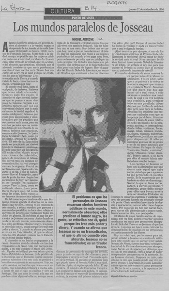 Los mundos paralelos de Josseau [artículo] Miguel Arteche.